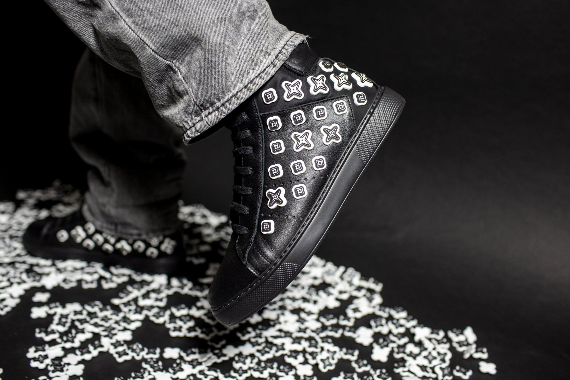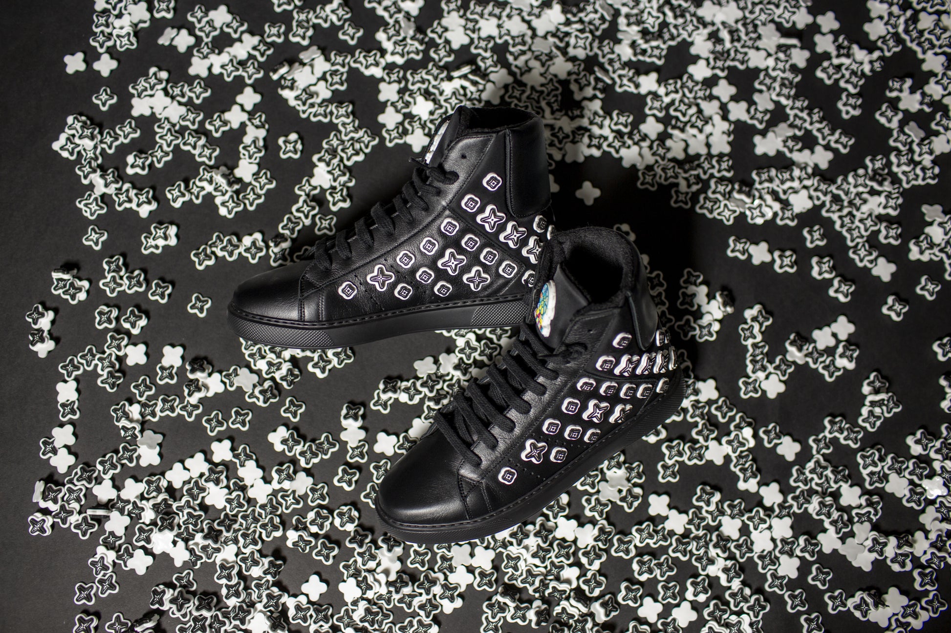 tomaia in pelle con stelle 3d cucite a mano + alfabeto custom con velcro